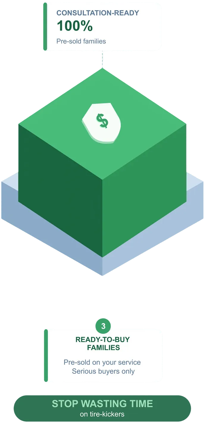 What you get is the lead, the context, and the timing advantage. Closing that family into a paying client is on you — and we'll equip you with everything you need to make that conversation count.